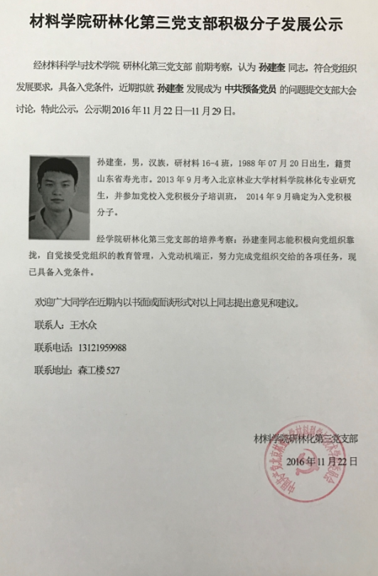 材料学院研林化第三党支部积极分子发展公示