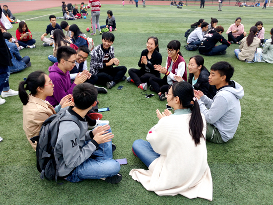 参与成员随机分为六组,在校园内开展吸管传指环、传球接力、认识植物、坐地起身等活动,同时在各个环节中穿插有关国家历史、校史院史、环境保护、古典文学等知识问答环节,展现出同学们的团结与智慧。