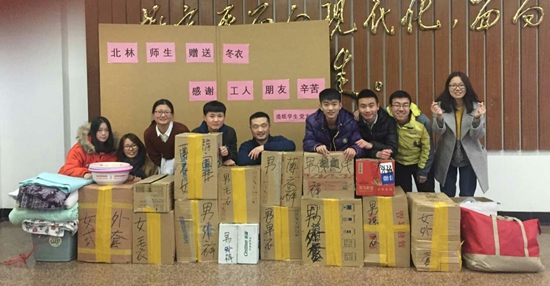 小雪节气之后,北京进入寒冬,细心的学生党员发现学校工地上很多工人衣着单薄,有的工人在路边旧衣回收站购买棉衣御寒,联系工地相关负责人之后,造纸学生党支部的党员联合材料学院教工党支部,发起了为建设北林的工人朋友捐赠冬衣冬被的“温暖衣冬”活动。送温暖活动受到工人朋友的欢迎,当天捐赠的几十箱衣物、三百多件冬衣冬被全部送到工人朋友手中。