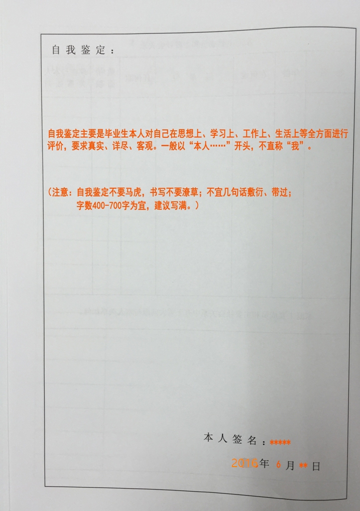 1、毕业生应实事求是地填写本表,填写时一律用钢笔或签字笔(黑色字迹),字迹要清楚。