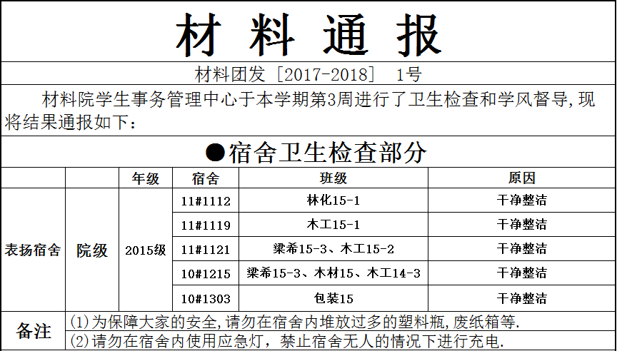 材料通报 [2017-2018] 1号