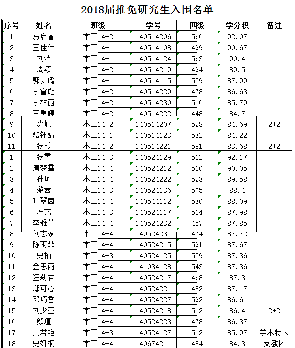 2018届推荐研究生入围名单公示