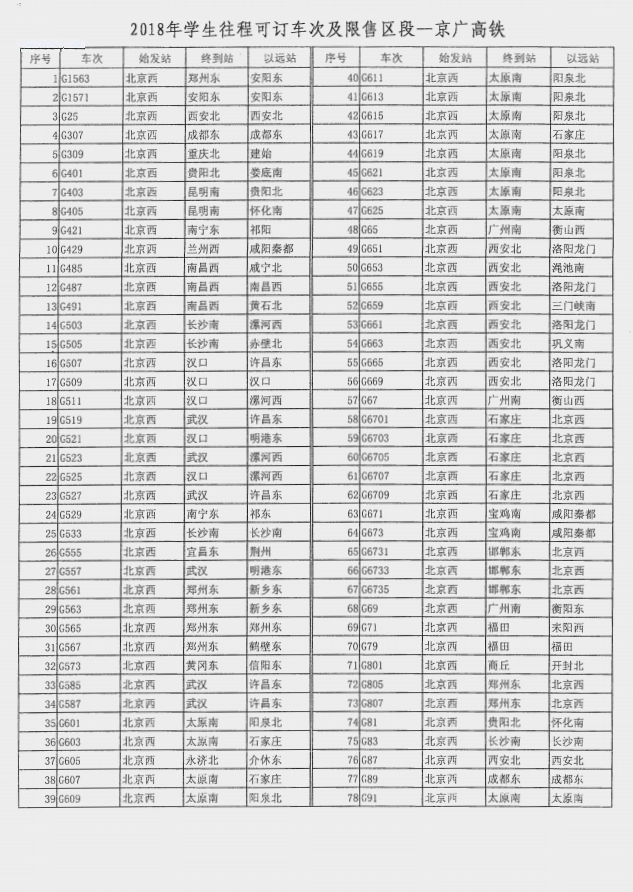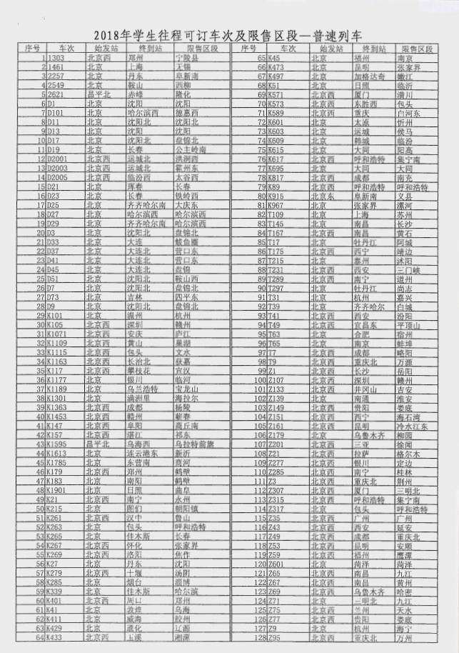 1.可定车票范围:北京站、北京西站、北京南站、昌平北站始发列车的学生火车票(硬座)、动车票(二等座),且为优先满足长途学生的需要,执行限售区段,仅办理限售站到终点站区间各站点(包含限售站),见下图。